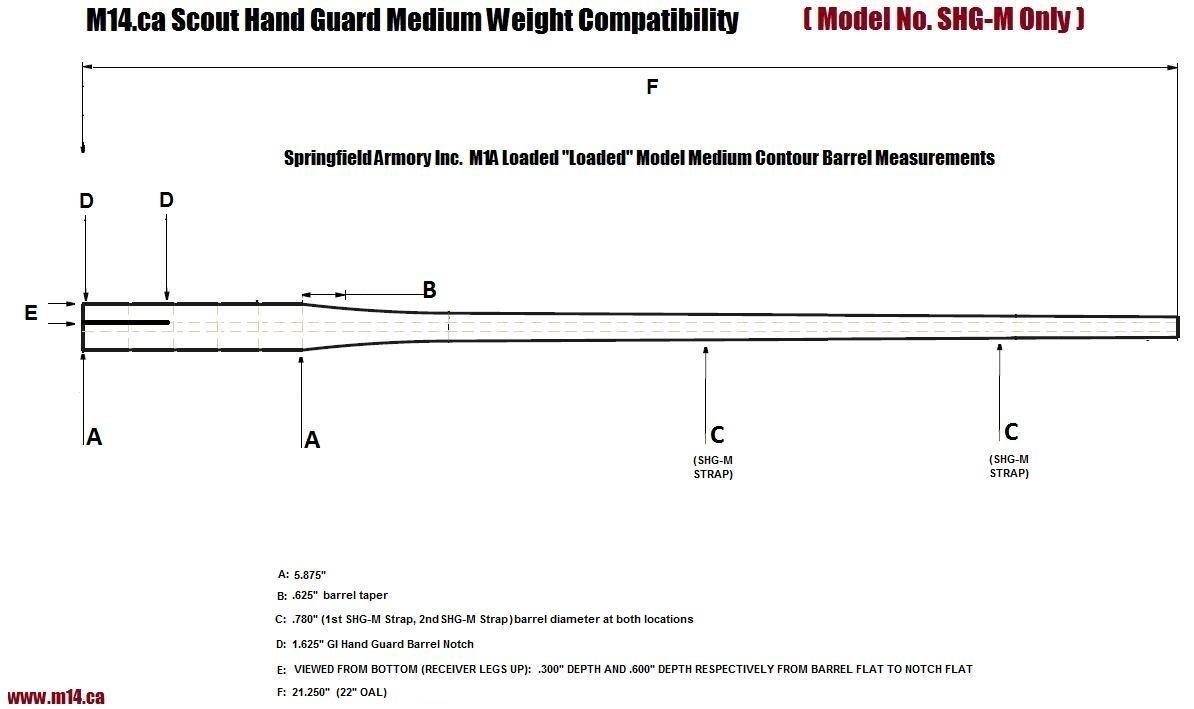 The M14/M1A/M305 "SHG-M MOD II" (Scout Hand Guard-Medium MOD II) is the world's only ultra-low picatinny forward optics mounting platform designed to index perfectly on your Springfield Armory Inc. M1A equipped with a medium contour barrel (i.e, SAI Inc., Loaded and National Match rifles). Standard Contour and Heavy Contour barrels are not supported with this model. For standard contour equipped M14/M1A/M305 rifles see our standard model SHG here. The SHG-M can be installed to M14.ca Blackfeather "RS" equipped rifles as well as other M14/M1A/M305 rifle stocks. The SHG-M Picatinny rail is approx. 12.625" long and mounts as low as the top flat of your M14 receiver at the barrel ring. It includes mounting points at 10 oclock and 2 oclock for M-LOK accessories, sold separately.